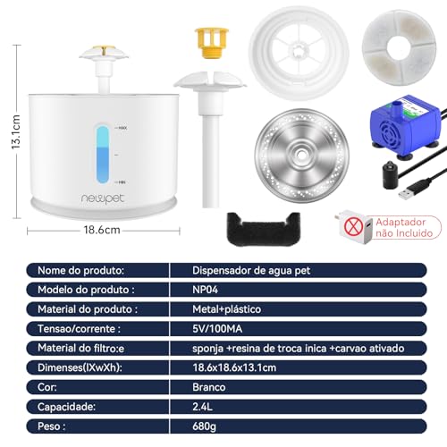 Fonte de Água Bebedouro Newpet 2.4L Automático Cães e Gatos Preços